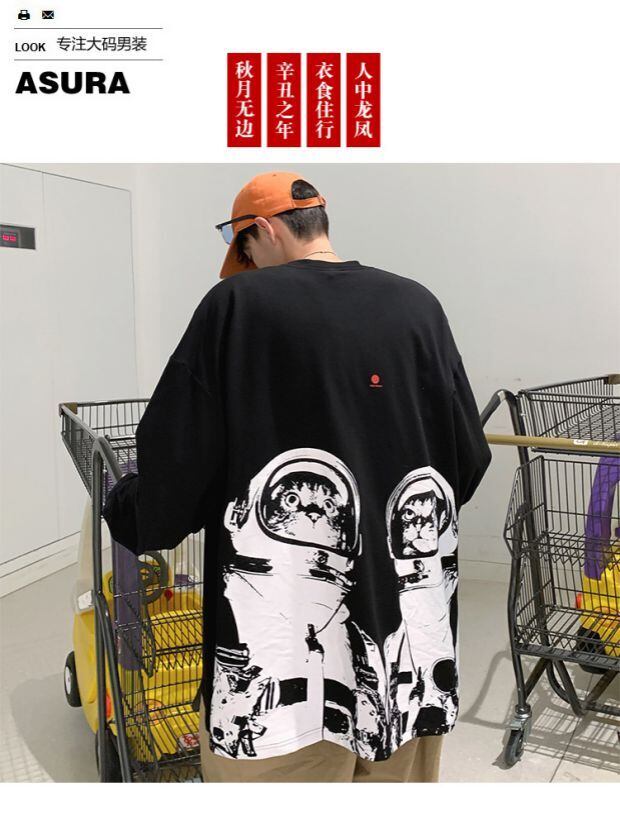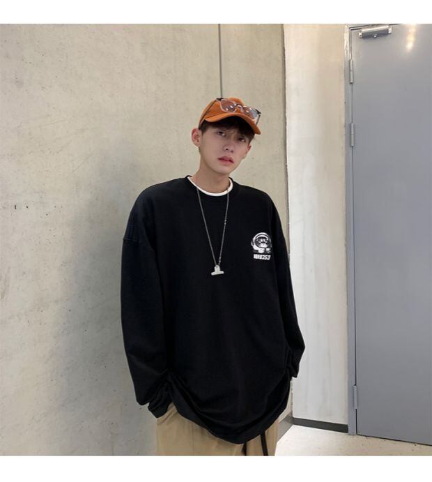 長袖スリーブTシャツ シャツ ラウンドネックルーズオータム ロング 秋物 Oネック ASURAプラスサイズメンズ65520180198