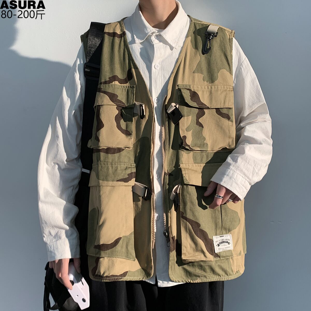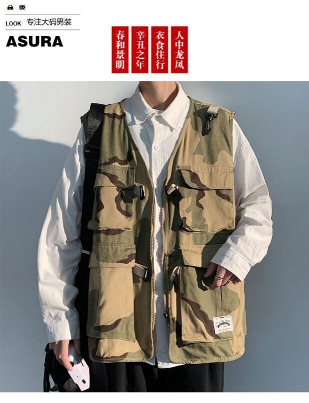 迷彩柄オータムジャケット スタンダード レトロ 大きめサイズ 秋物 ポケット多め マルチポケット ASURAプラスサイズメンズ99543288980