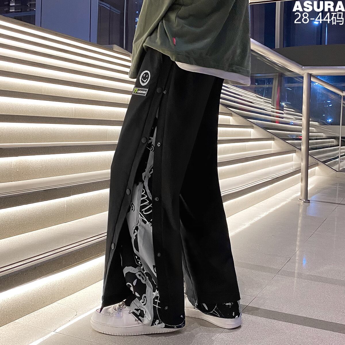 ブレストプリントルーズパンツ オータム ストリート 大きめサイズ 秋物 ASURAプラスサイズメンズ12822139828
