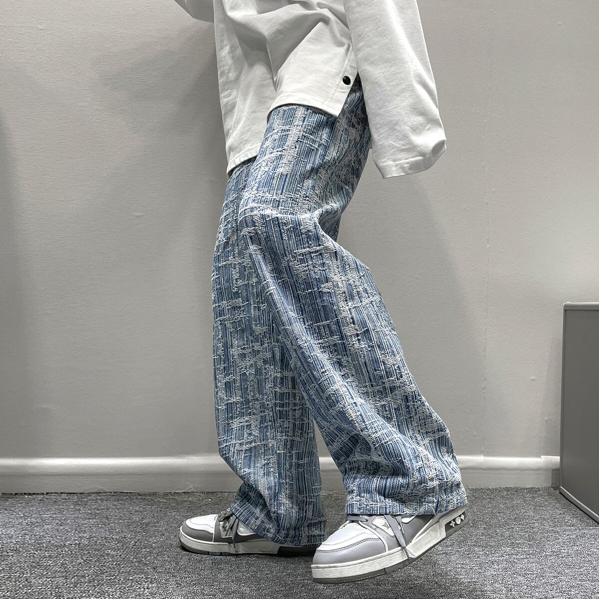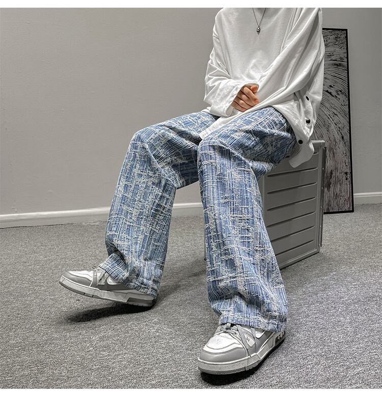 スタンダードストライプルーズカジュアルパンツ スプリングオータム レトロ ストリート 大きめサイズ 春物 秋物 ASURAプラスサイズメンズ44228390052