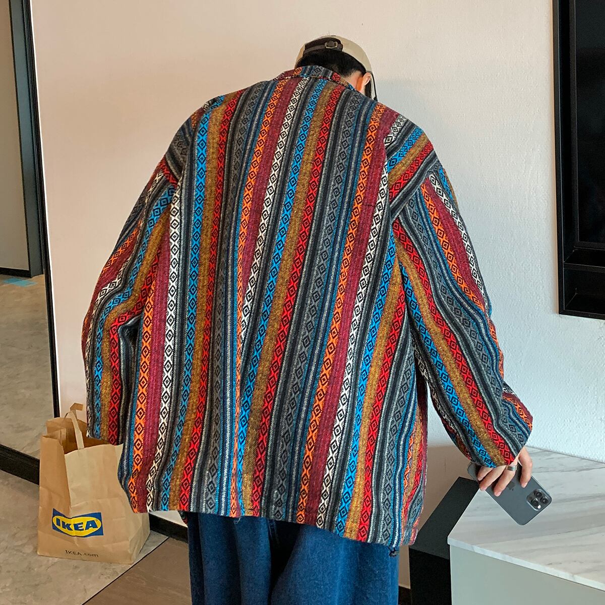 自然派ストライプジャケット カラースタイルルーズオータムスタンダード レトロ 大きめサイズ 秋物 ASURAプラスサイズメンズ89257121514