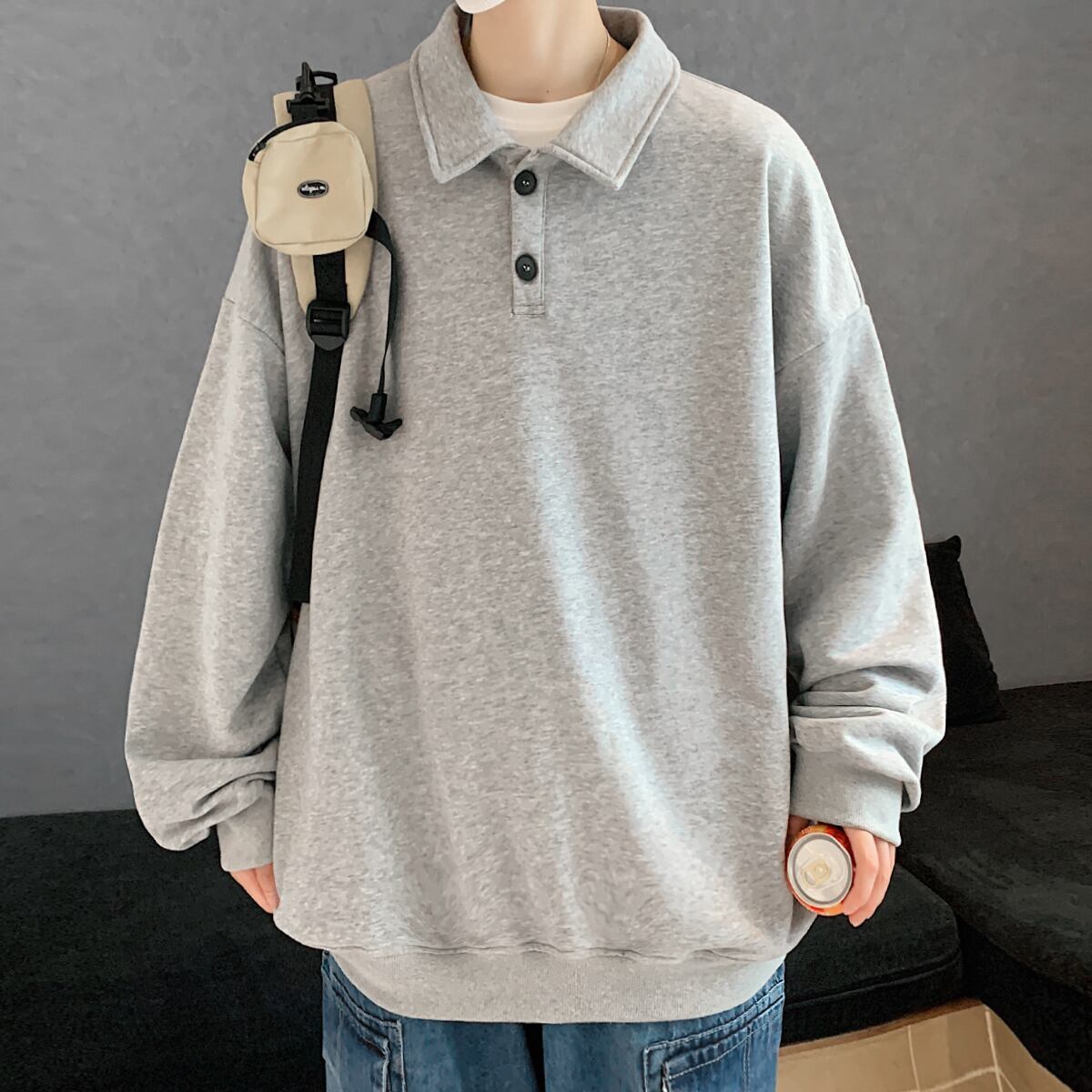 セーター ルーズジャケット オータムTシャツ グレーソリッド カラー ロング 大きめサイズ 秋物 ソリッドカラー ASURAプラスサイズメンズ73019222381