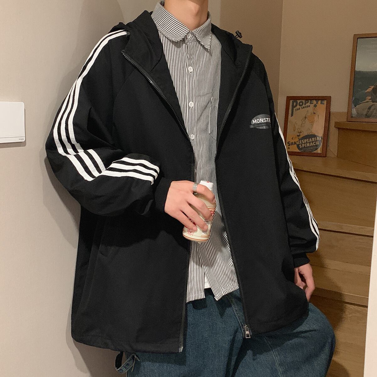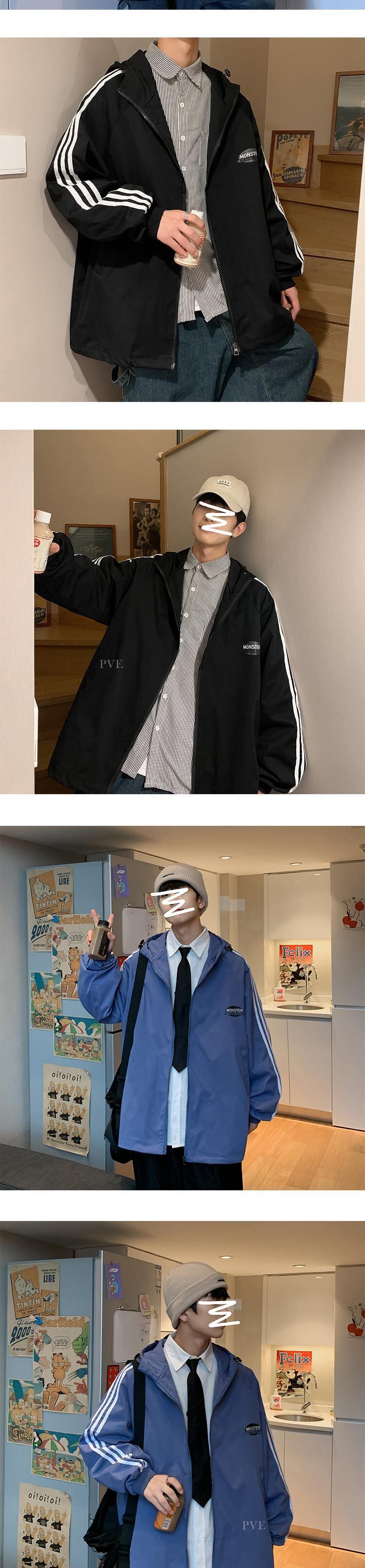 ストライプジャケット トップス ルーズフードオータム 大きめサイズ 秋物 ASURAプラスサイズメンズ59600981584